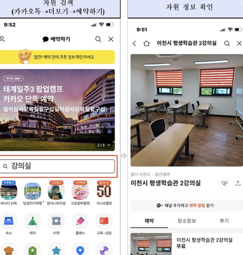 사용자는 원하는 자원의 이름이나 지역을 검색해 시설을 찾고, 날짜와 시간대를 선택해 신청할 수 있습니다. 일부 자원은 유료이며, 이 경우 현장 결제나 계좌이체를 통해 비용을 지불해야 합니다. 카카오 플랫폼은 이처럼 사용자 중심의 UI/UX를 갖추고 있어 비전문가나 디지털에 익숙하지 않은 고연령층 사용자에게도 적합한 예약 환경을 제공합니다.