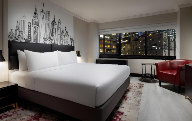 타임스스퀘어와 록펠러 센터, MoMA까지 도보로 이동 가능해서 관광하기 너무 좋은 입지에 있어요. 넓은 객실, 일부 리노베이션된 깔끔한 인테리어, 간편한 조식 서비스까지! 반려동물도 함께 머물 수 있다는 것도 큰 장점이죠.