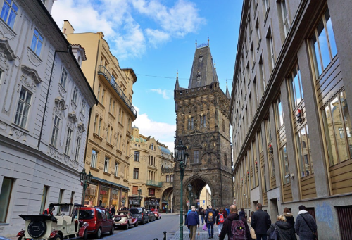 과거 프라하 성으로 가는 입구 역할을 했던 화약탑은 중세시대 분위기를 그대로 간직하고 있습니다. 바로 옆에 있는 시민회관은 체코의 대표적인 아르누보 양식 건물로, 내부에는 유명한 콘서트홀인 스메타나 홀이 자리하고 있습니다.