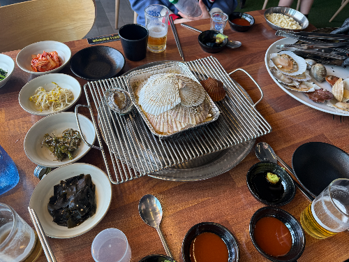조개구이가게마다 다른점은 밑반찬들이 다 틀리게 나온거 같다.