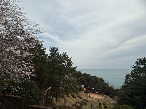 바닷가와 벚꽃을 아래로 다 볼 수 있어서